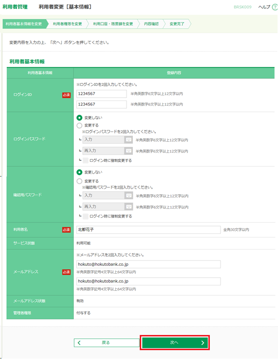 | ・一般ユーザがログインパスワードおよび確認用パスワードを一定回数以上連続して間違えた場合、そのユーザはサービスがご利用できなくなります。 |