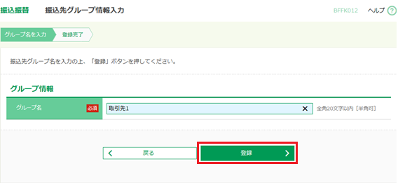 振込先グループ名を入力し、[登録]をクリックしてください。