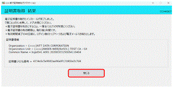 証明書情報をご確認のうえ、「閉じる」ボタンをクリックしてください。