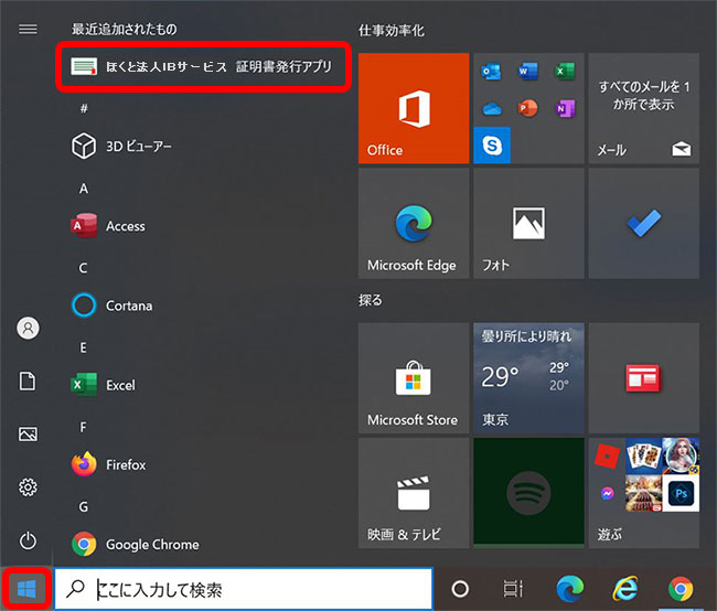 [証明書発行アプリのダウンロード]ボタンをクリックしてください。
