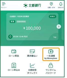 - 「一生通帳 by Moneytree」および「Moneytree」のご利用により生じた損害について北都銀行は一切の責任を負いかねます。