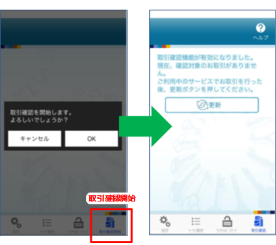 トークンアプリが最新バージョンであることを確認し、トークンアプリの 「取引確認開始」タブをタップします。