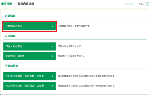サービスを利用するための承認方法や先方負担手数料、口座メモ・委託者メモを登録・変更できます。