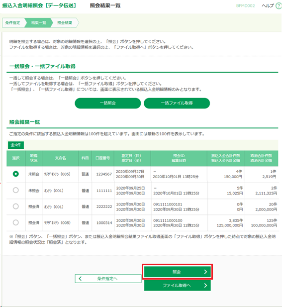振込入金明細照会[データ伝送]