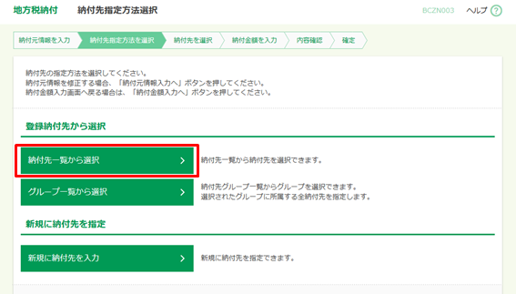 [納付先一覧から選択]をクリックします。
