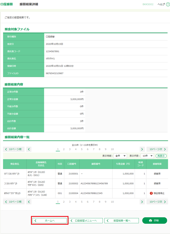 振替結果は、引落日の翌日から3ヶ月後の月末まで照会できます。